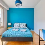 В апартаментах Le 8Eme Art - 4 Chambres, Grand Espace, Balcon & Parking Gratuit Inclus є балкон і гардероб, а також вид на внутрішній двір. В апартаментах для вашого комфорту передбачені окремий туалет і душ. Крім того, у ванній кімнаті ви знайдете фен і рушники.